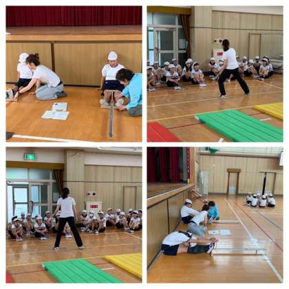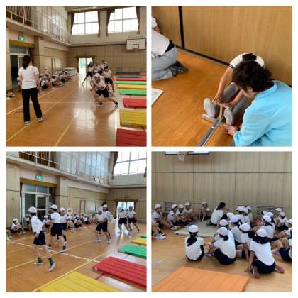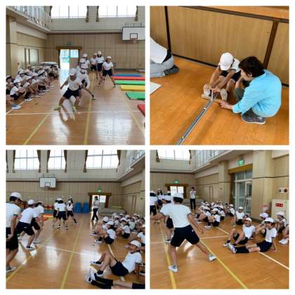 6年生は長座体前屈の計測、反復横とびの練習などに取り組んでいました。
