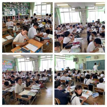 音楽では伴奏に合わせ、心を一つにしてリコーダーの演奏をしていました。