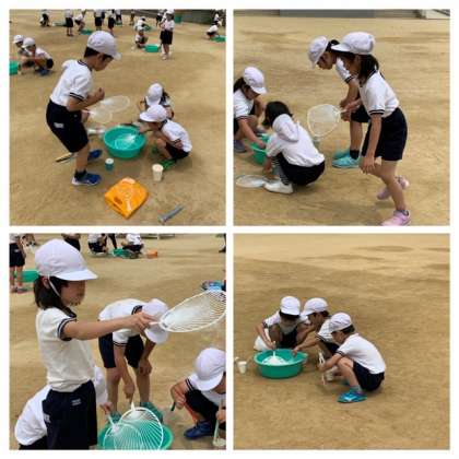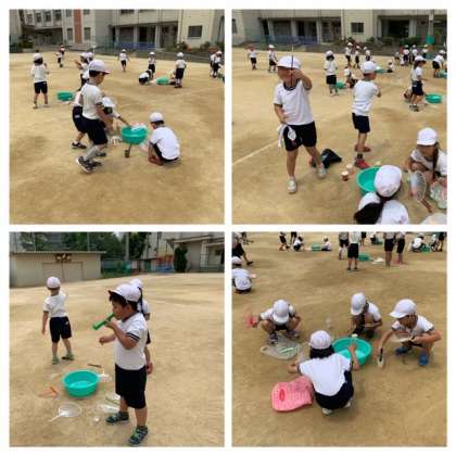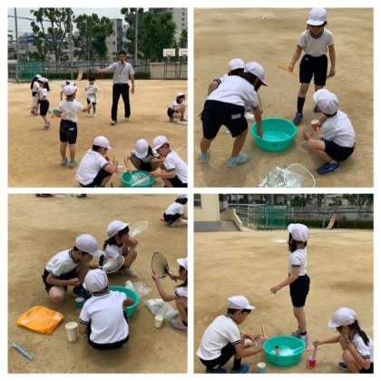 うちわやストローなどを使って様々なシャボン玉をつくっていました。