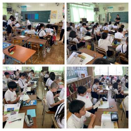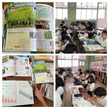 5年生はコメ作りについて資料を活用しながら学んでいます。