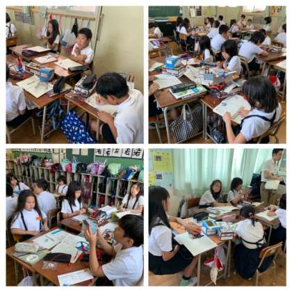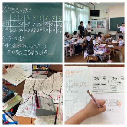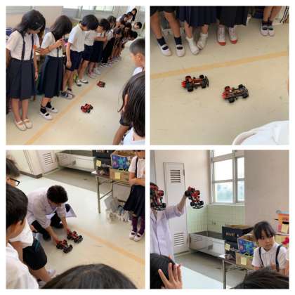 4年生の理科では、直列つなぎと並列つなぎの違いについて、車を走らせて確認していました。