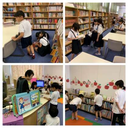 図書の時間には、夏休みに借りる図書を選んでいました。