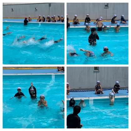 3年生のプール学習では、繰り返し推進力を高める練習をしていました。