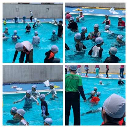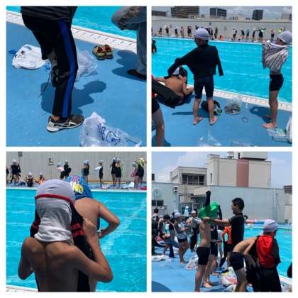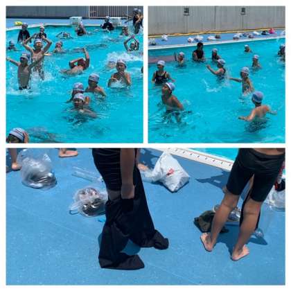 水馴れ体操を終えると、服やズボン、靴を履いてプールに入りました。