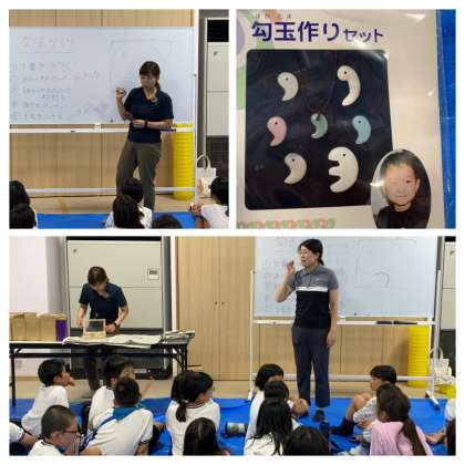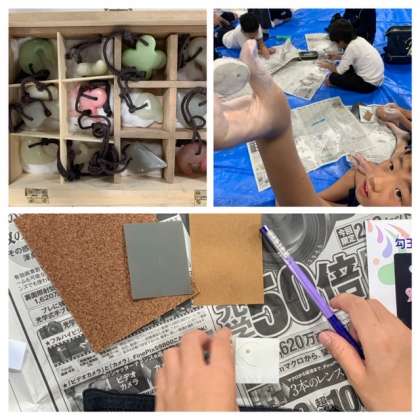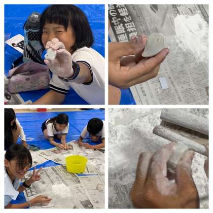 まが玉づくりの石をサンドペーパーで磨き、形を整えていきます。