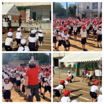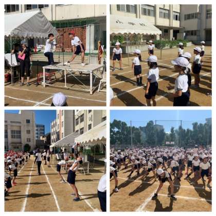 閉会式で行われる、終わりの体操をしています。