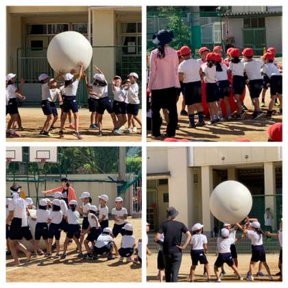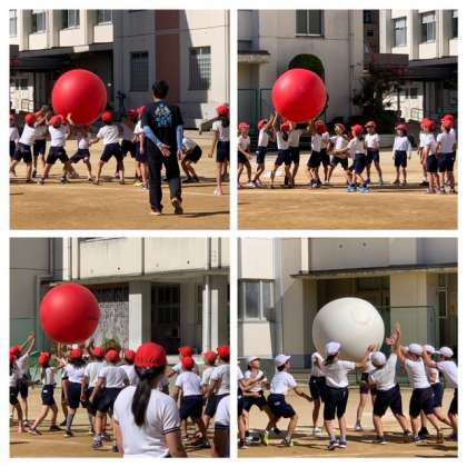 大玉を持ち上げながら送るのは難しく、何度か落ちてやり直しをしていました。