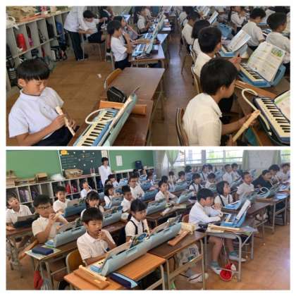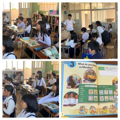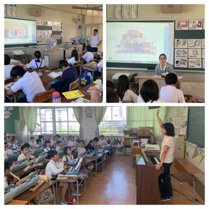 5年生の英語では、アメリカの9月のようすについて聴き取り、英語で答えていました。