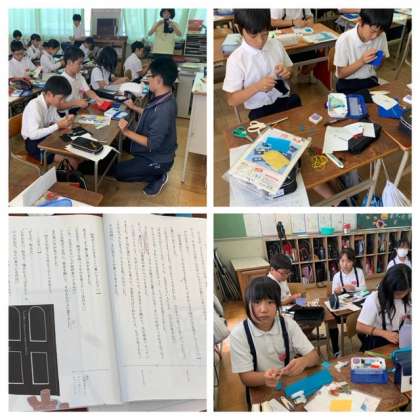 家庭科の小物づくりでは、細かな作業を集中して取り組んでいます。