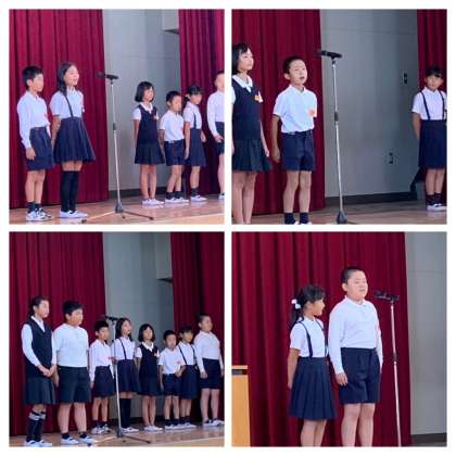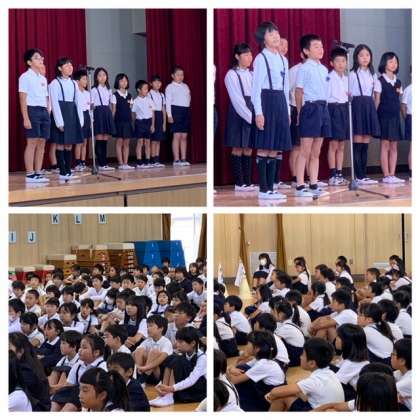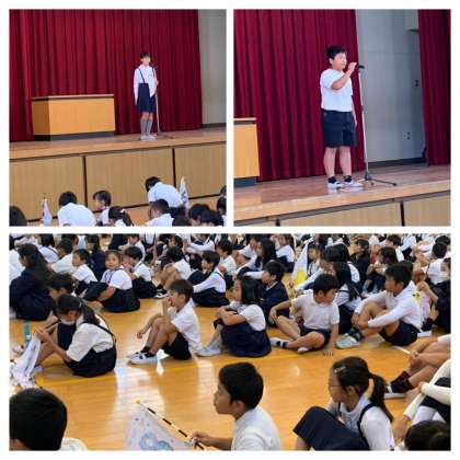 今朝の児童集会は、後期代表委員会のメンバー紹介がありました。