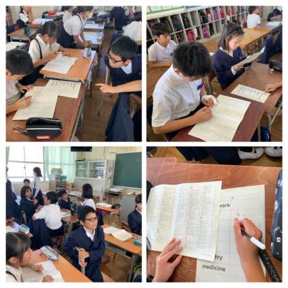 英語の授業体験では、授業の進め方や、英語辞典の使い方体験などを通して、中学校の雰囲気を知ることができました。
