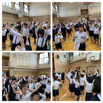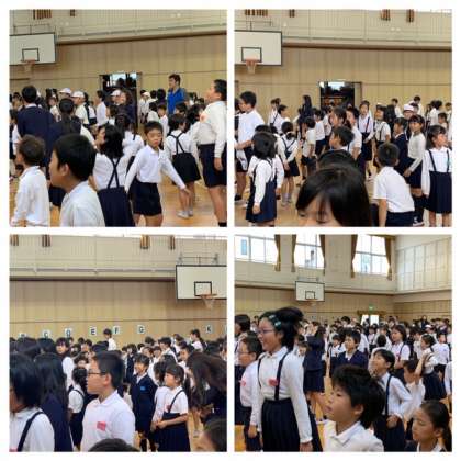 今日の児童集会は、全員でゲームをした後、オリエンテーリングの表彰を行いました。