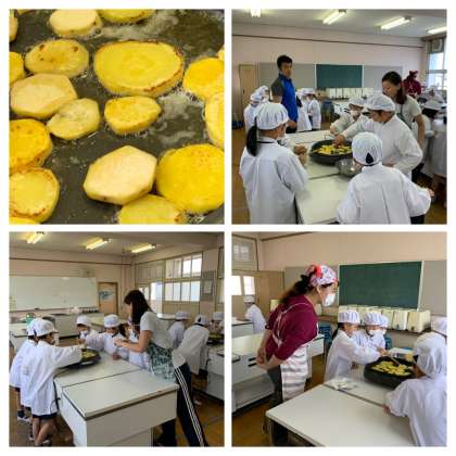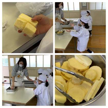 ホットプレートで焼いたイモは、バターやサツマイモの甘い香りがしておいしそうでした。