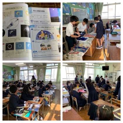 6年生の理科では、太陽と月の表面について、ちがいを見つける学習をしていました。