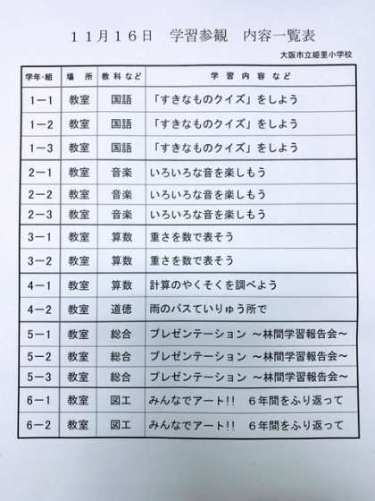 11/16(土)公開授業・作品展について