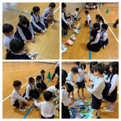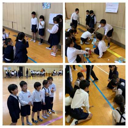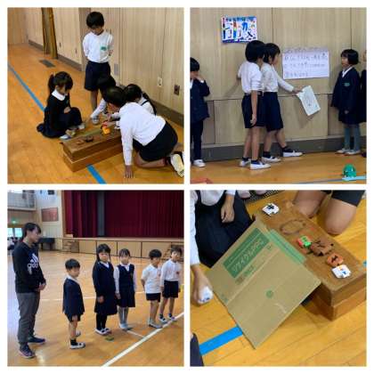 今日は1年生を招待して、おもちゃで楽しく遊んでもらう「おもちゃランド」を計画しました。