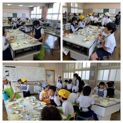 自分たちが調理したジャガイモ料理をいただきます。
