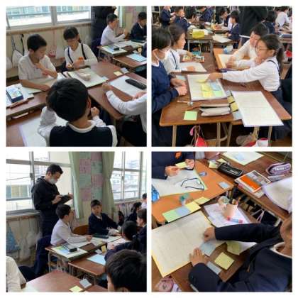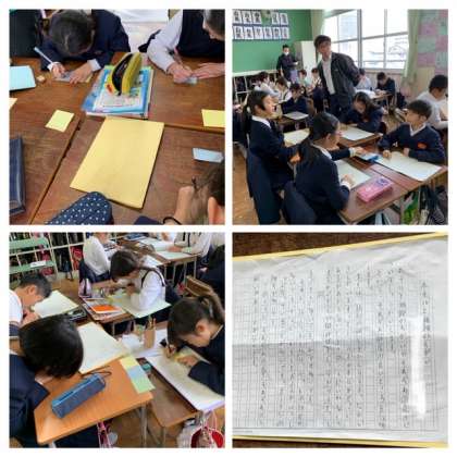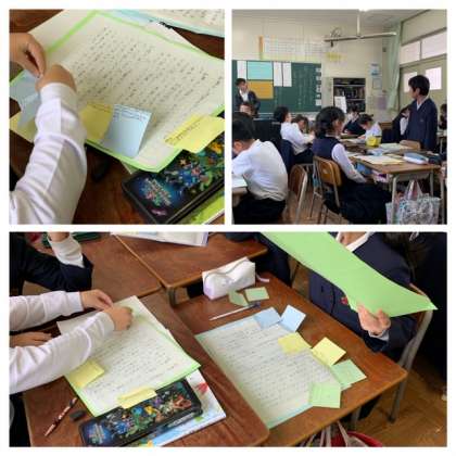 4年生の国語では、「くらしの中にある和と洋」レポートを互いに読み合って感想を出し合っていました。