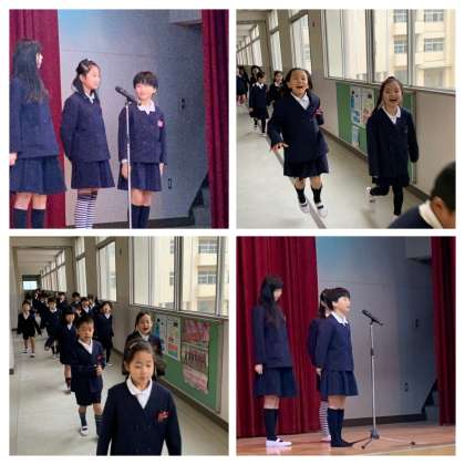 林間での思い出、運動会や作品展での感想など自分の言葉で堂々と発表してくれました。3人に大きな拍手が送られました。