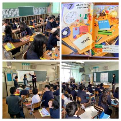 5年生の英語では、Where is the treasure?について質問に答えながら進めていました。