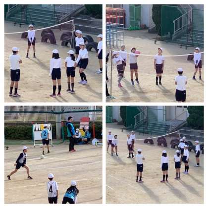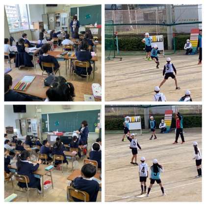5年生がキックベースボールやソフトバレーボールのゲームをしています。