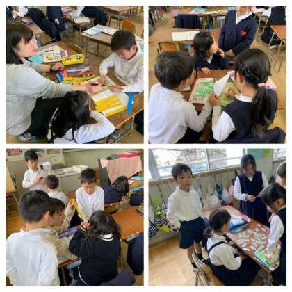 1年生のさんすうでは、計算カードなどを使ってグループで計算練習をしています。