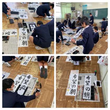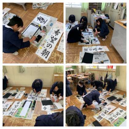 6年生も書き初めをしています。
