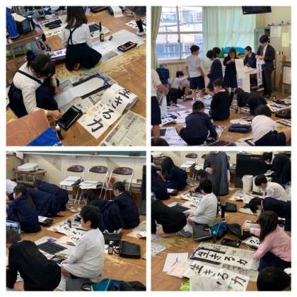 3年生は書き初めに取り組んでいます。