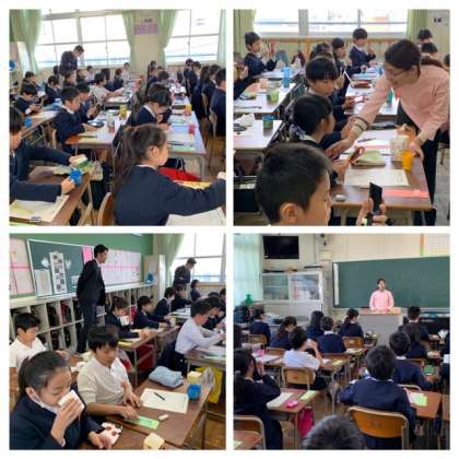 歯みがきの大切さについて、歯科衛生士さんからお話を聞いた後、歯みがき指導を受けました。