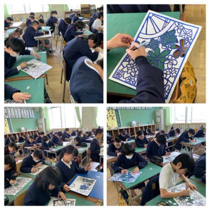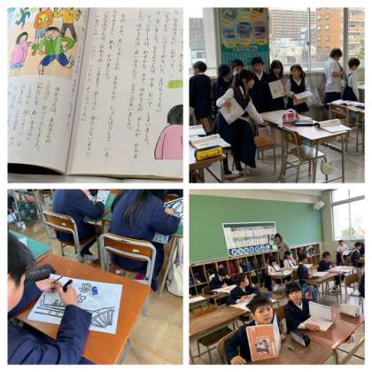 2年生が道徳ノートに自分の考えを書き、先生に見てもらっています。