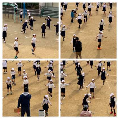 準備運動をした後は、先生の指示によっていろいろなとび方を練習していきます。