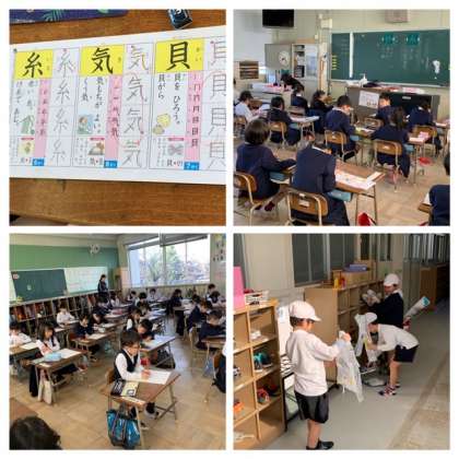 1年生が漢字練習をしています。