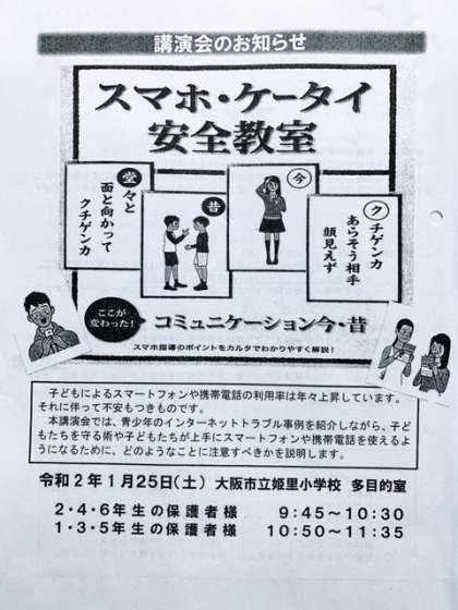 学習参観をしていない学年の保護者は講演会にご出席ください。