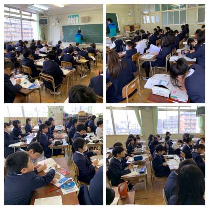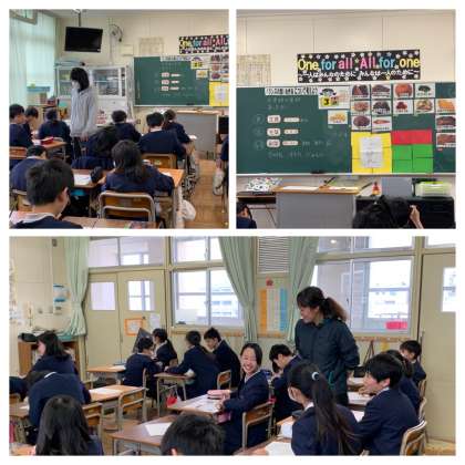 6年生の家庭科では、「バランスのよいお弁当について考えよう」をテーマに主食・主菜・副菜の割合を考えながらワークシートに記入していました。