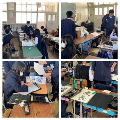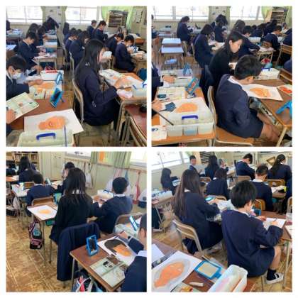 5年生は書写に、6年生は自画像に取り組んでいます。