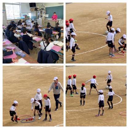 1年生は、歌のファイルに集会で歌う歌の歌詞を貼っています。