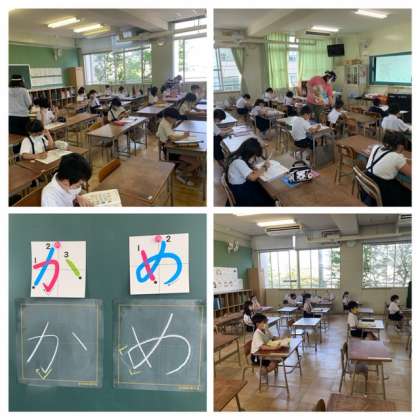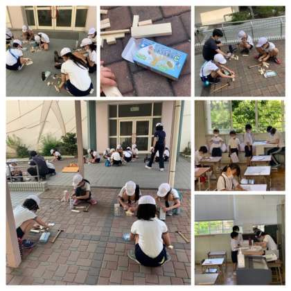4年生は図画工作で木材とくぎを使って組み立てていました。