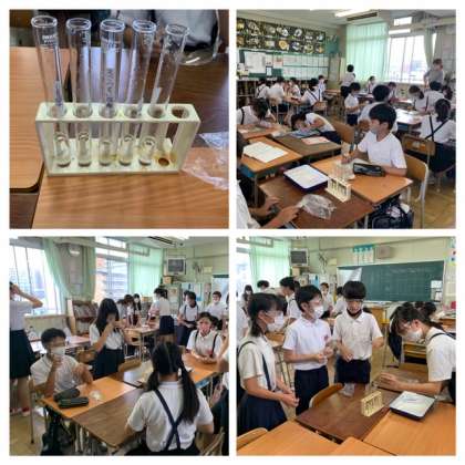 6年生の理科では、食塩水・炭酸水・アンモニア水などの見た目、においなどについて実験を通して確かめていました。