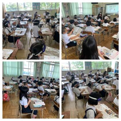 1年生のおんがくでは、気に入った音を見つけて、歌といっしょに鳴らしています。