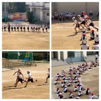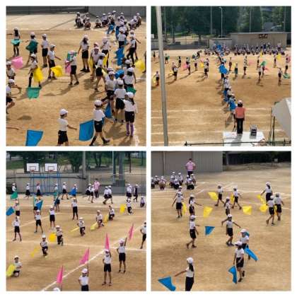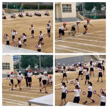 各学年とも運動場で練習し、演技のようすを他の学年が見学しました。