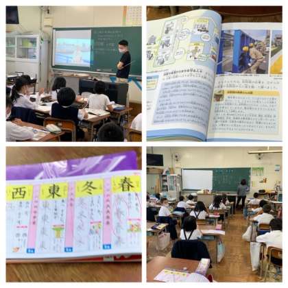 4年生の社会では、台風や高潮が起きたら、誰がどのようにしてまちを守っているのか、映像も見ながら話し合っています。