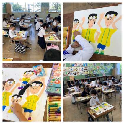 1年生の図画工作では、運動会の演技について、パスで表現しています。