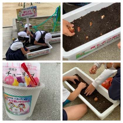 「人権の花運動」として、人権啓発活動地域ネットワーク協議会からいただいた球根を2年生の子どもたちが植えてくれました。