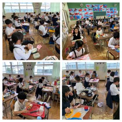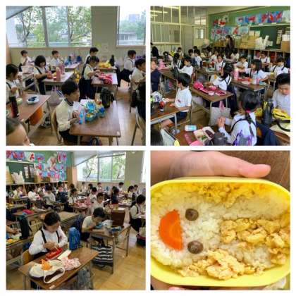 遠足が延期になって残念そうな2年生ですが、お弁当をもう一度食べられるとあってうれしそうにも見えます。
