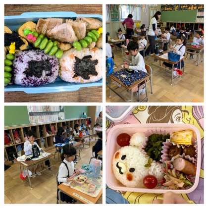 雨のため遠足が延期になりましたが、子どもたちは気持ちを切り替えて楽しくお弁当を食べています。