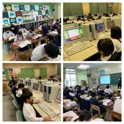 2年生がパソコンの操作につて、お絵かきソフトを使って覚えています。