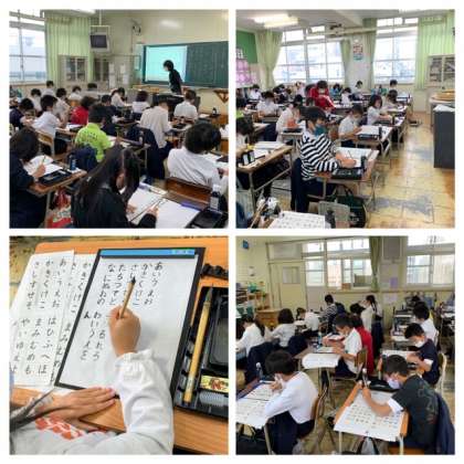 4年生の書写では、ひらがなを小筆で書いています。