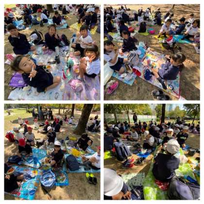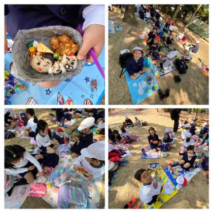 遊具で遊んだ後は、楽しみにしていたお弁当タイムです。