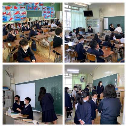 コロナ対策として、マスクの着用や分散して講堂が密にならないようにしています。