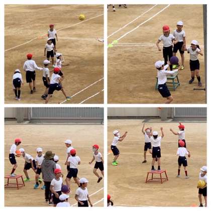 4年生がポートボールのゲームをしています。